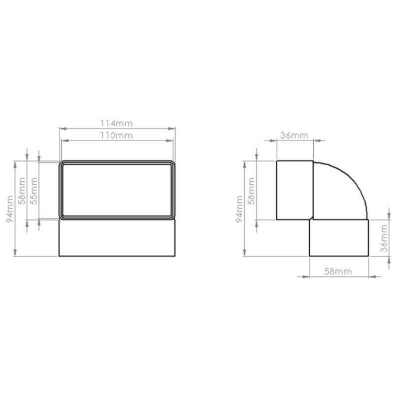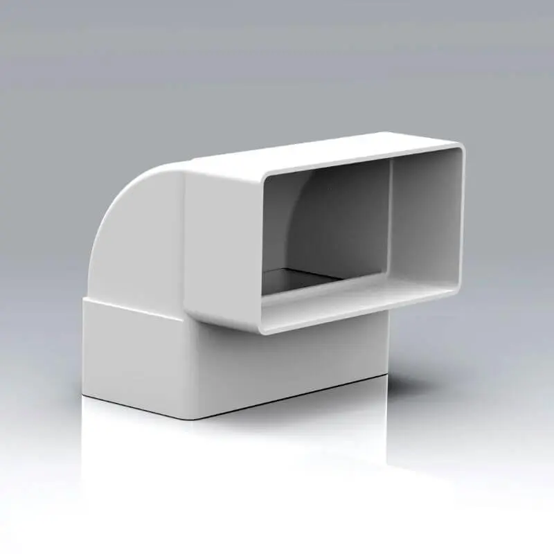 This is our 110x45mm 90° Vertical Bend. The system 100 rectangular 110x54mm ducting range offers the ideal ventilation solution for traditional fan installations into extensions and refurbishment properties.