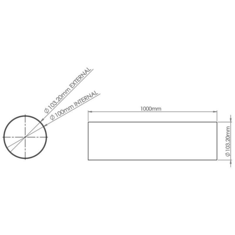 The 100mm diameter 1m Round Pipe is manufactured from Rigid PVCu. The Round Pipe has a minimum free area of 7,855mm² and fits over the male spigot of the System 100 fittings.