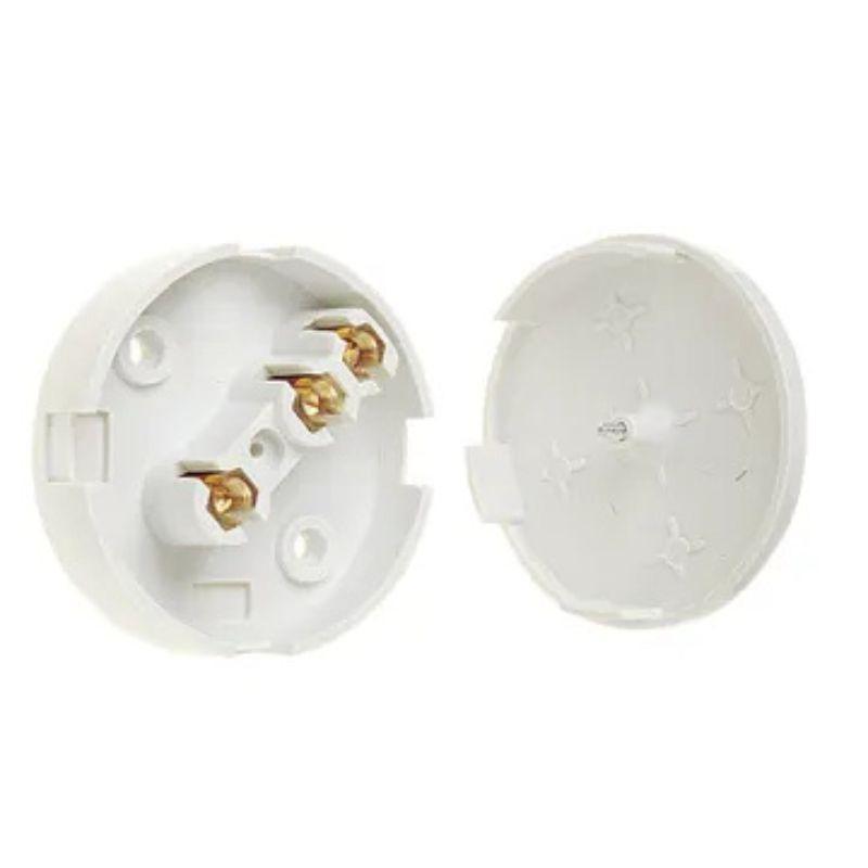 A white plastic junction box. Ideal for lighting etc. With 4 terminals.
