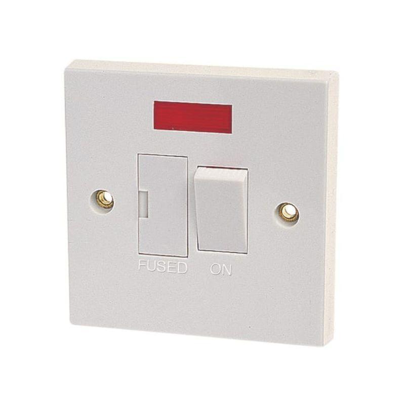 Dencon White Moulded Plastic Switched Fused Connection unit 13A with Pilot Lamp.