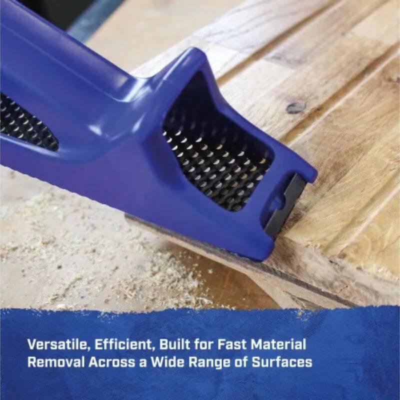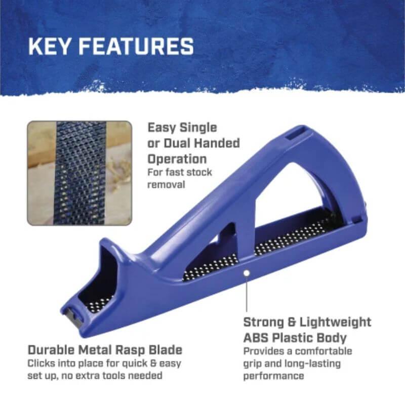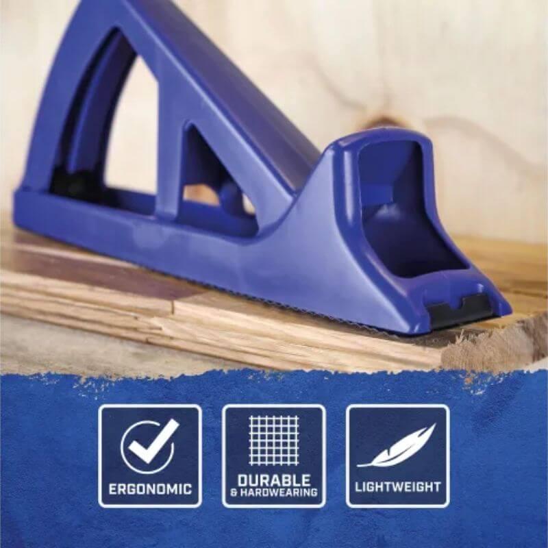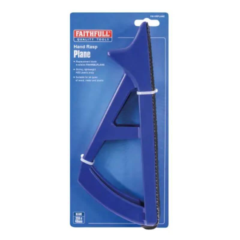 The Faithfull Hand Rasp Plane is suitable for removing material from all types of wood, aluminium, plastics, fibreglass and laminates. It can also be used for plaster and filler removal. The lightweight and strong ABS plastic body is shaped like a plane to allow single or dual handed operation for fast stock removal. The durable metal rasp blade clicks into place, making its replacement tool-free and fast.