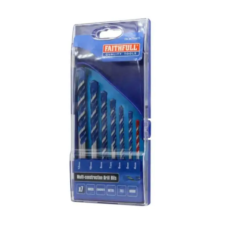 This 7 piece Faithfull Multi Construction Drill Set contains sizes: 4, 5, 6, 7, 8, 10 and 12mm.