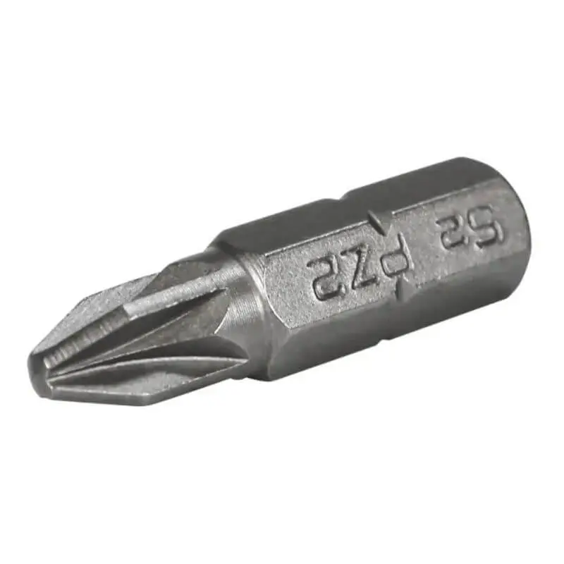 These Faithfull professional 1/4in Hex Drive Pozidriv Screwdriver Bits are manufactured from high strength, heat-treated S2 grade steel. Bits are shock and wear resistant and feature precision machined tips to provide an optimum fit, helping to prevent screw stripping and cam-out and provide a long working life.