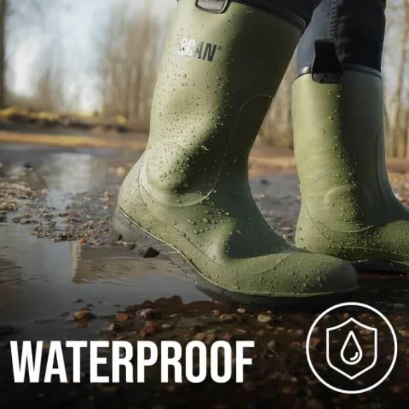 The Scan Fleece Lined Wellingtons are made from PVC making them fully waterproof. They also have a stitched fleece-liner, aiding both comfort and warmth perfect for cold, dirty and wet conditions. Rigger-style pull tabs and a ribbed heel aids donning and removing without a struggle.