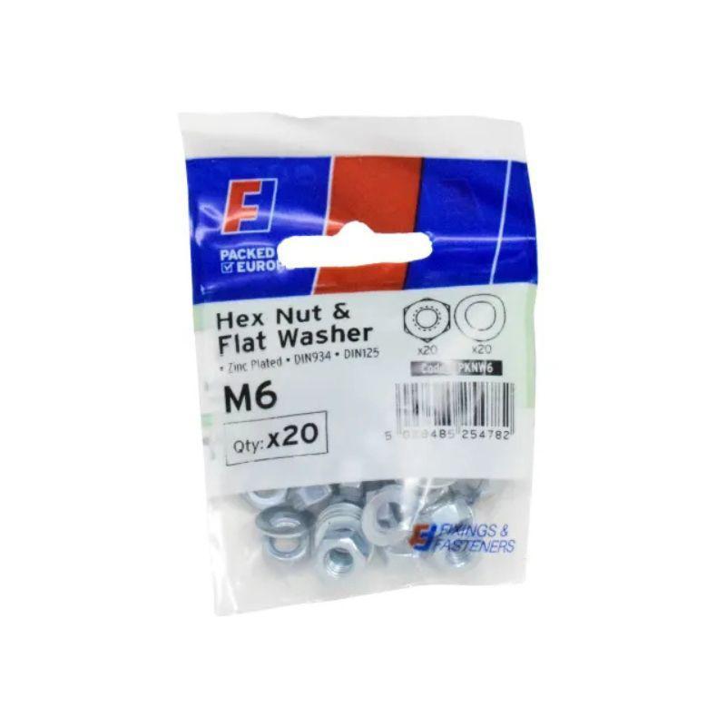 Forgefix M6 Hex Nut & Flat Washers (Pack x 20)