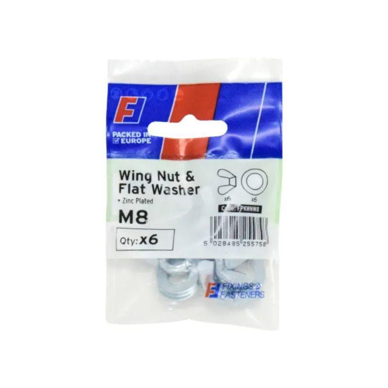 Forgefix M8 Wing Nut & Flat Washers (Pack x 6)