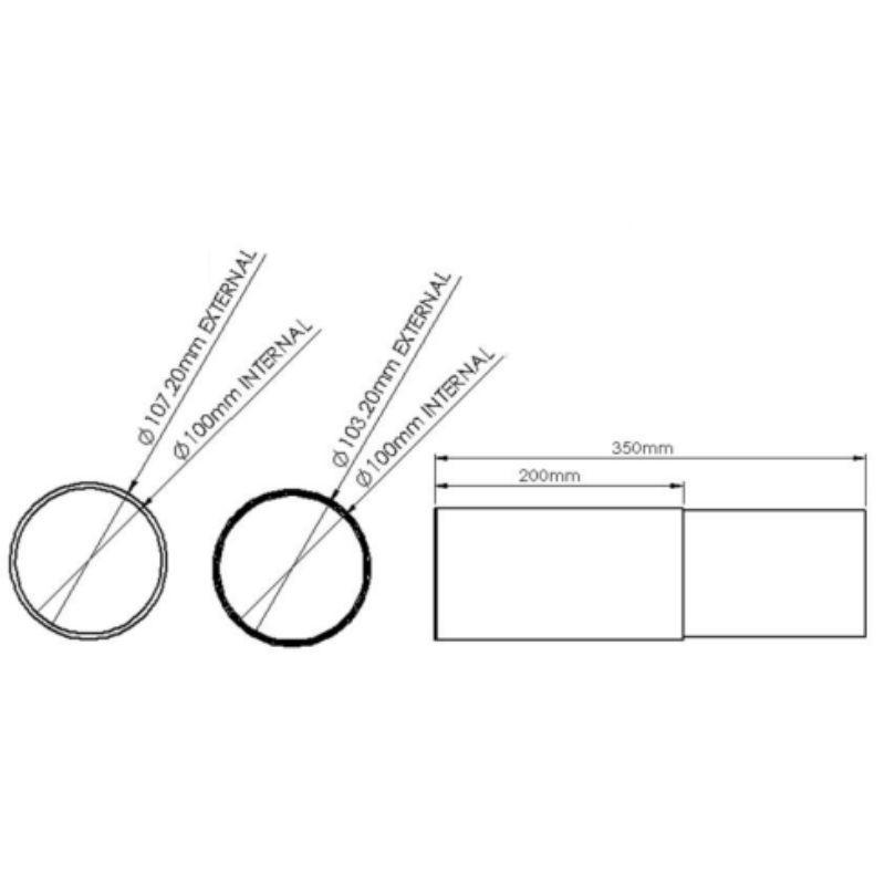100Mm Round Telescopic Pipe with reducing ring – 200mm – 350mm. A plastic telescopic pipe for ducting through walls for extractor fans and PIV & PPU units.