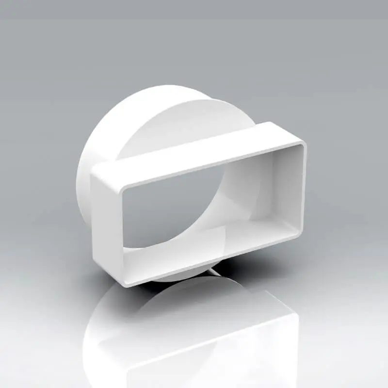 This is our short 110x54mm Rectangular to 100mm diameter Male Adaptor. The system 100 rectangular 110x54mm ducting range offers the ideal ventilation solution for traditional fan installations into extensions and refurbishment properties.