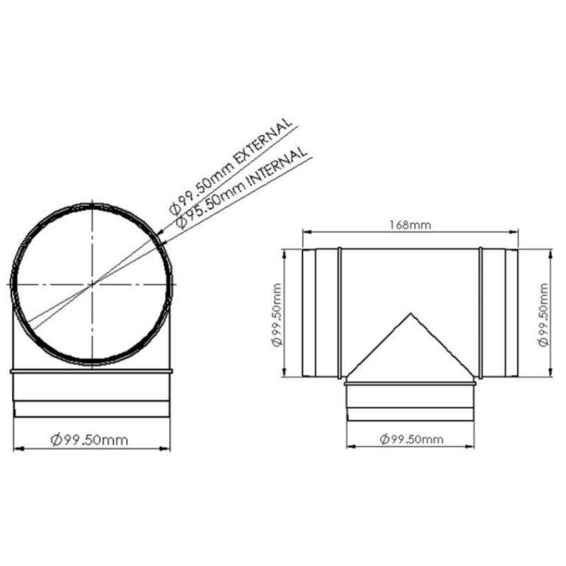 This is our 100mm Round Equal T Piece. This is part of our 100mm round ducting range and is traditionally used along fans, PIVs or mechanical heat recovery systems.