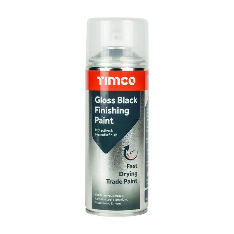TIMCO gloss black finishing paint is a multi-purpose acrylic based finishing paint designed to give a professional and corrosion resistant finish to most substrates including: ferrous metals, stainless steel, aluminium, plaster, wood and some plastics. Ideal for ironmongery, garden furniture, decorative fixtures, concealing unsightly surfaces and repairing damaged paint surfaces.
