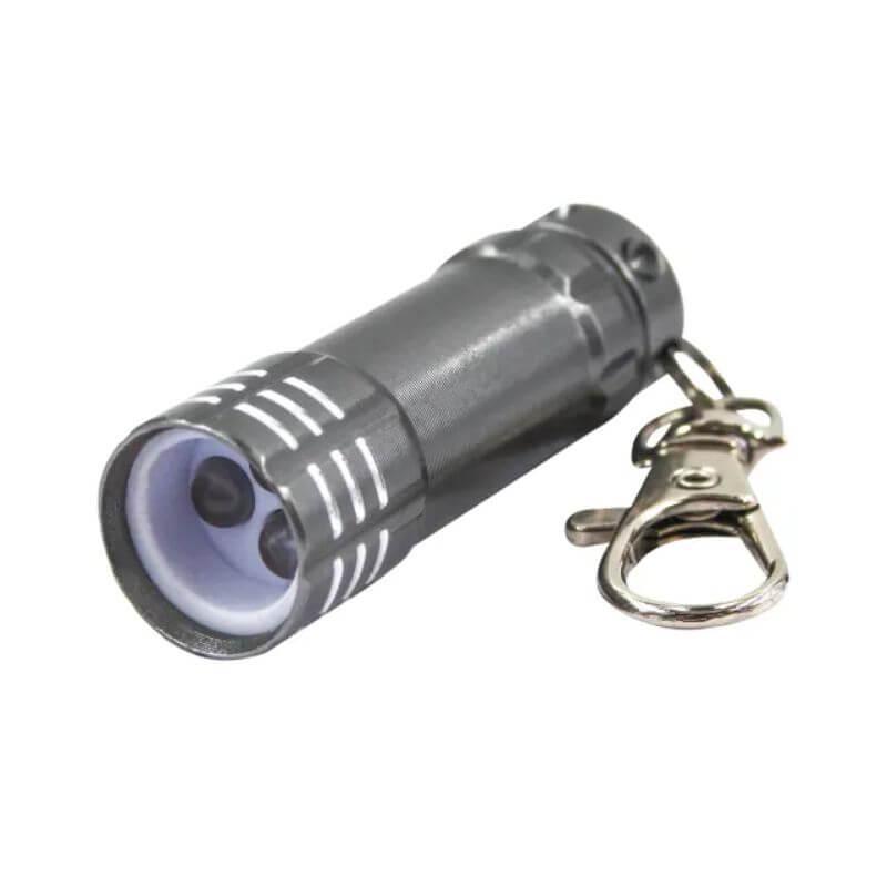 The Uni-Com Keyring Torch has a handy, compact size, perfect for attaching to a hand bag or back pack. It has 3 extra bright long life LEDs and a stylish and rugged anodised aluminium housing. Simply press the button on the end of the torch to turn the light on and off.