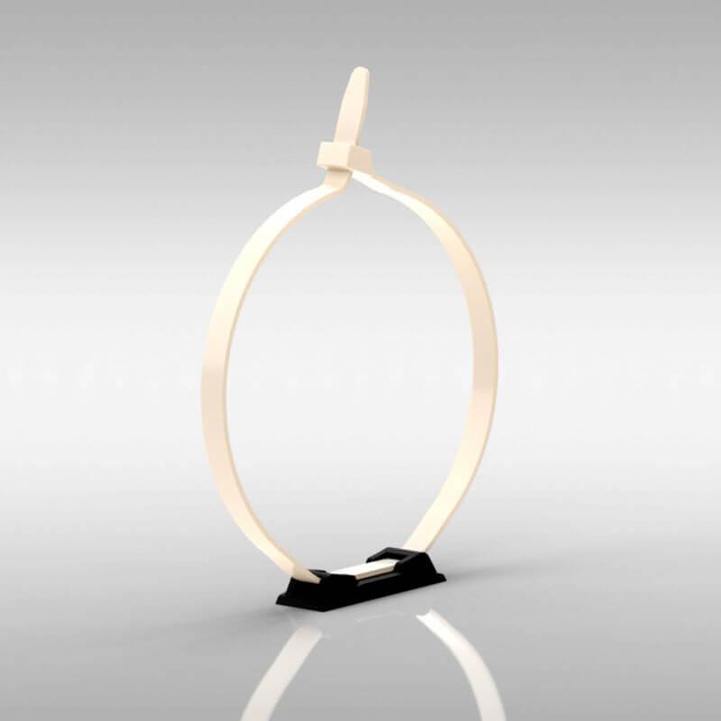 It is secured to the floor slab/ joist using the predetermined screw fixing using a screw. The cable tie is inserted into the UNIVERSAL-PIPE-CLIP and the ducting is secured using the cable tie. Rigid Duct must be adequately supported and it is recommended at least every 750mm and either side of a connector.