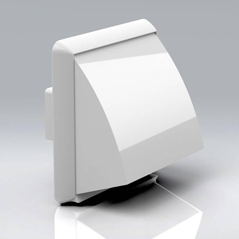 The VKC232 is designed for installation on exposed external walls where wind or back pressure against the ventilation unit are present. The cowled outlet is designed to shield the duct from the wind and deflect the air away. The non-return flap acts as an additional measure to prevent airflow returning through the duct. As the fan operates the flap lifts to allow the exhaust air to disperse into the atmosphere. VKC232 is designed for exhaust air only.